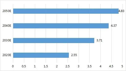我國(guó)60歲以上人口預(yù)估數(shù)(億人)
