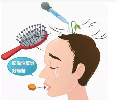 可表現(xiàn)為頭皮出現(xiàn)暗黃紅色斑、表面被覆油膩性鱗屑或痂皮,還可能導(dǎo)致失眠。